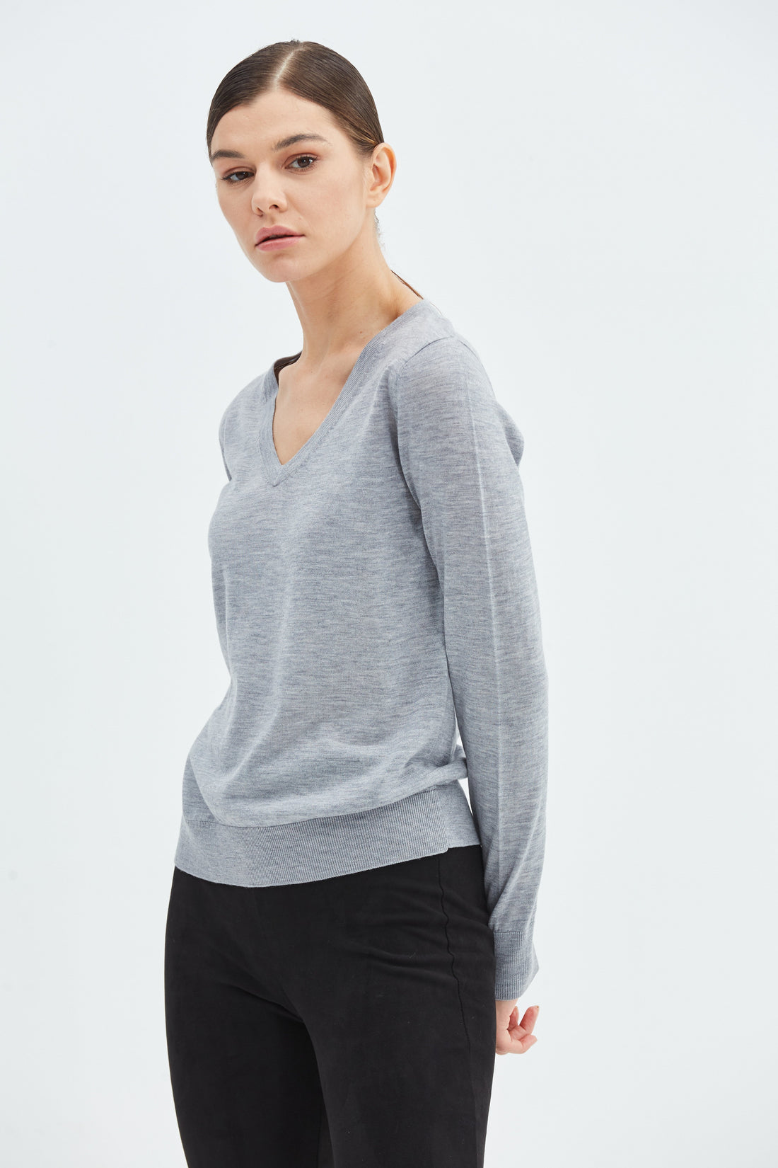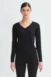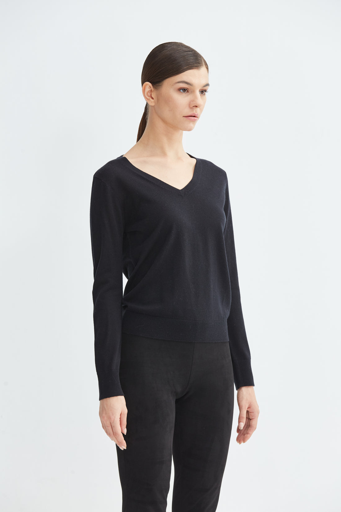Featuring a classic V neckline that should be found in every wardrobe, our merino wool sweater fits slim to the body and is the perfect layering piece. Lightweight and breathable, this piece will earn its place as a year-round staple.