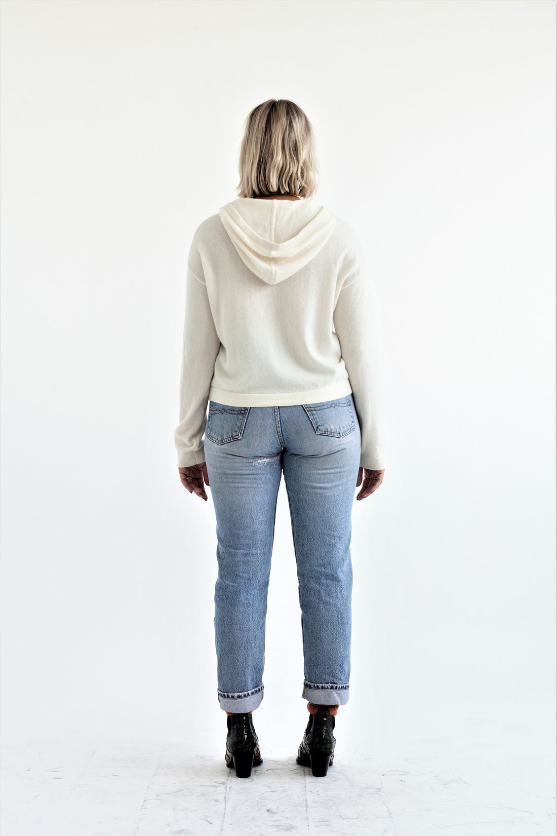 The perfect day-to-night hoodie has arrived. Made from our signature pure cashmere, this piece is ideal for those WFH, lounge-from-anywhere days. Designed with a slightly cropped, boxy fit, it pairs beautifully with high-waisted jeans or sweats. It also features wide drawstrings and a front pocket for that little extra something.
