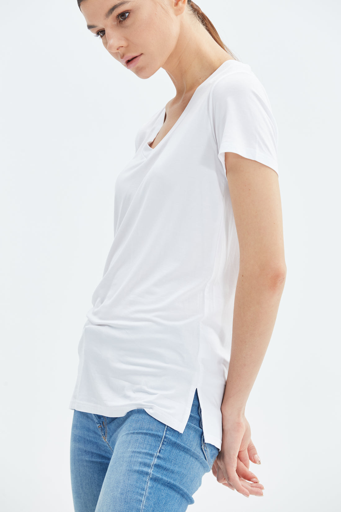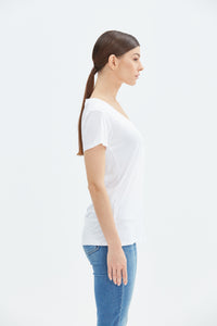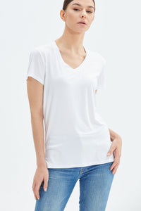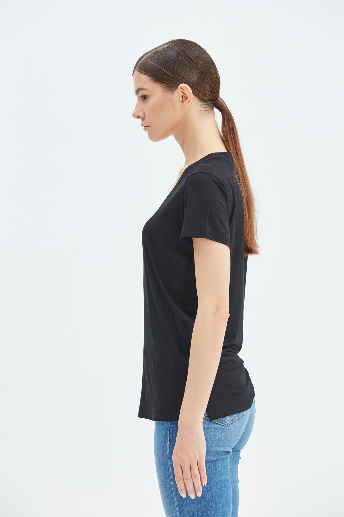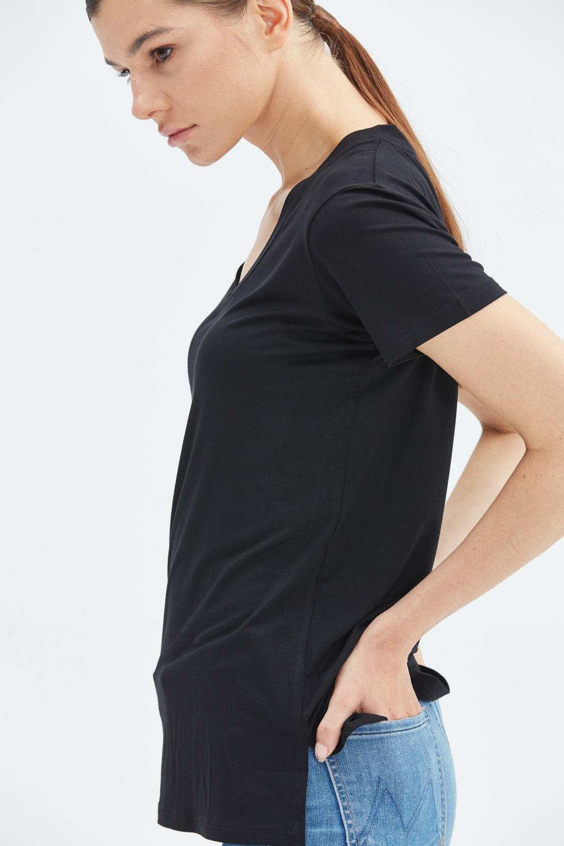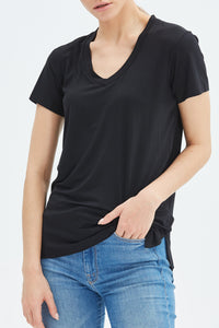 A blend of silky-soft modal and a hint of stretch makes this the ultimate fabric of comfort and style. While we don't love blended fabrics (because they are harder to recycle), we love the durability and longevity of modal and know these staples will last for years to come. We also worked with our supplier to use readily available fabric from the market instead of producing new fabric.